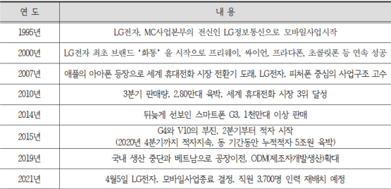 그림4. LG전자 스마트폰 사업 연도별 현황