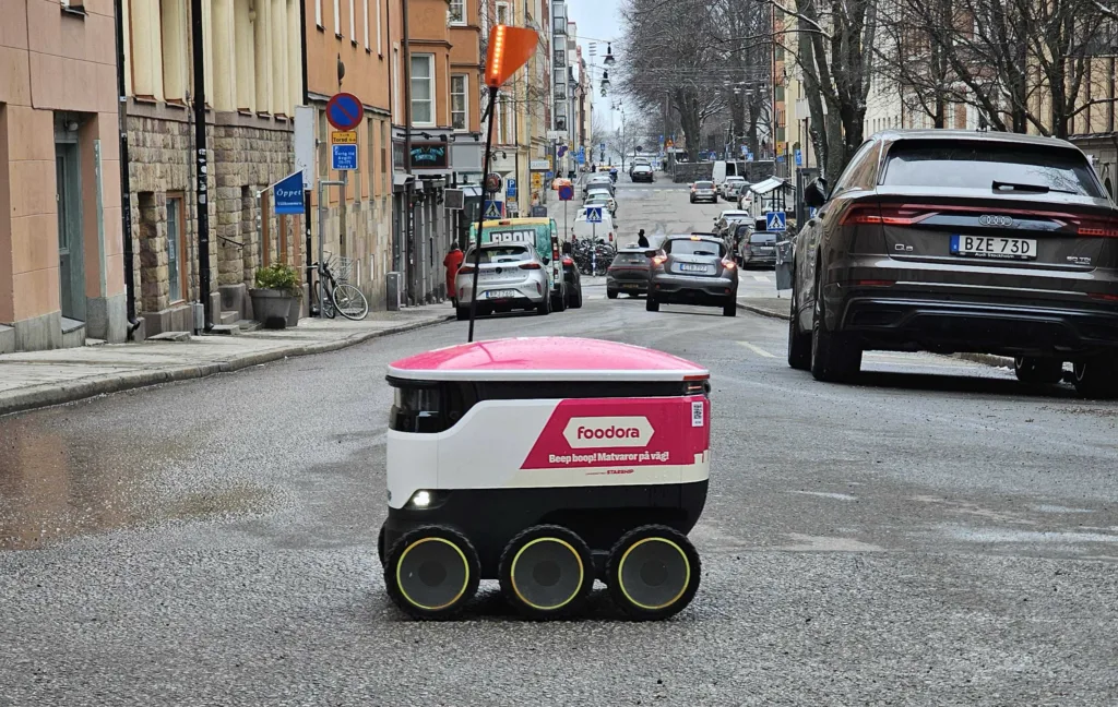 Starship Technologies사는 스웨덴의 Q-커머스 플랫폼인 foodora사와 파트너십을 맺고 스웨덴 스톡홀름에서 2025년 3월 13일부터 foodora의 음식 주문 배송 서비스를 자율로봇으로 시작하고 있다 (그림1 참조) [1]. 이 로봇들은 Sodermalm의 Hogbergsgatan과 Solna의 Bangatan에 위치한 foodora사의 마켓 매장에서 최대 3km에 이르는 거리까지 주문을 접수한다. 이 지역의 고객들은 foodora 앱에서 직접 주문을 수행하고 로봇은 몇분 안에 상품을 자율 배송한다. Starship Technologies사의 공동창업자인 Ahti Heinla은 foodora와의 협업을 통해 음식을 배달받는 방식을 확장하고 혁신할 수 있기를 기대한다고 밝혔다. 로봇은 배터리로 구동되어 500톤 이상의 이산화탄소 배출량을 줄이며 에너지 효율적인 배송을 통해 자동차 배달의 환경친화적인 대안으로도 고려되고 있다.