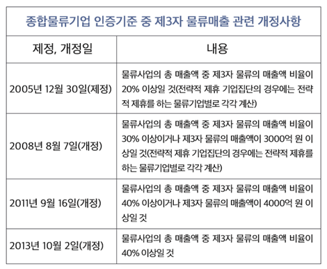 그림2. 종합물류기업 인증기준 중 제3자 물류매출 관련 개정 사항