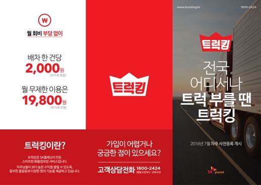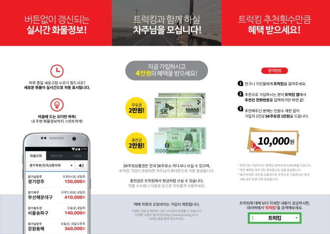 그림5. 트럭킹 차주모집 공고. 초기 트럭킹은 SK그룹과 연계하여 가입차주들에게 SK주유상품권을 제공했으나, 내부적으로는 경품이 근본적인 화주 유인 수단이 되지 않는다고 판단하고 있다.
