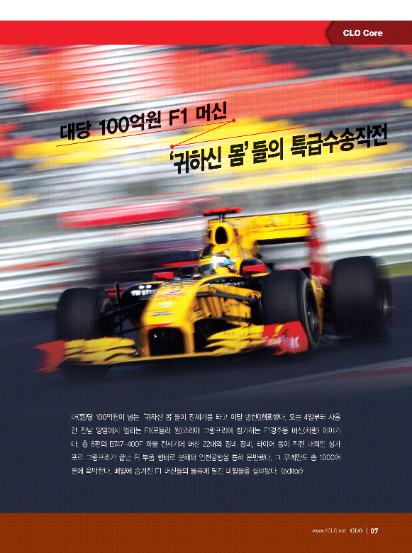 | 자료출처 | 대당 100억원 F1머신, '귀하신 몸'들의 특급수송작전 |