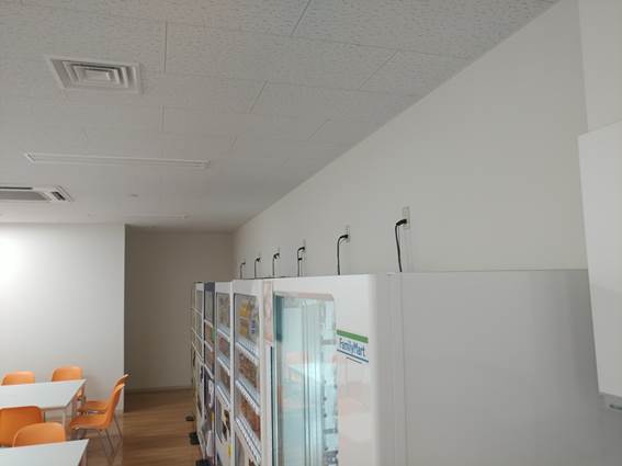 사실 물류센터에서 일을 하다보면 자연히 땀이 온 몸을 적신다. 최소한 내가 가본 한국 물류센터 중에는 ‘에어컨’이 있는 곳이 없었고, 그냥 거대한 선풍기 몇 대 놓고 굴리는 정돈데 여름에는 이걸로 더위가 감당될 리가 없다. 물류센터에서 8시간 정도 알바를 끝마치고 퇴근 수속을 밟고 나면 “아, 그냥 집에가서 씻고싶다”는 생각밖에 안 든다. 샤워장? 내 경험 안에서 한국에 그런 물류센터는 없다. 또 놀란 것은 근무자를 위한 카페테라스다. 식당이 없는 이 물류센터에 구조상, 이곳은 현장 근로자들의 쉼터라고 한다. 자판기의 나라인 일본답게 근로자들의 먹거리를 챙길 수 있는 자판기 수대가 놓여있다. 역시 굉장히 깔끔하다.
