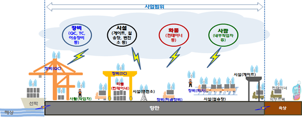 - ‘스마트’라는 매력적인 단어는 이미 스마트 시티, 스마트 그리드, 스마트 디바이스, 스마트 폰 등 다양한 분야에서 활용되고 있으며 주로 IoT 등 첨단 정보통신기술을 활용하여 효율과 생산성을 높이는 것을 의미 - 함부르크항, 발레시아항, 부산항, 인천항 등 국내외 항만에서도 스마트포트의 개념이 점차 도입되기 시작함