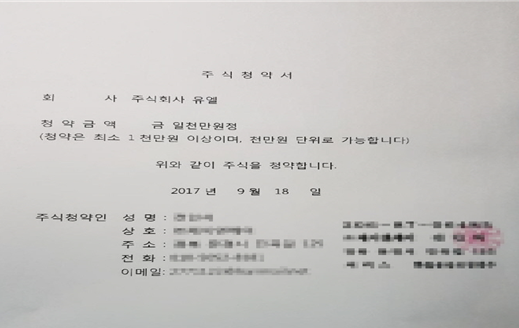 KG로지스 한 대리점장이 받은 주식청약서
