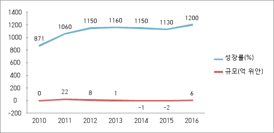 그림1. 2010-2016 중국 사치품 시장 규모 추이