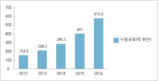 그림2. 2012-2016 중국 사치품 전자상거래 시장 규모 추이