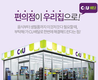다음은 편의점 상품을 직접 온라인으로 주문하고 집에서 받아볼 수 있는 서비스이다. 현재 CU에서는 메쉬코리아의 맛집 배달앱 ‘부탁해’와 함께 MOU를 통해 편의점 상품 배송 서비스를 제공하고 있다. 온라인으로 편의점 상품을 주문하면, 해당 편의점에서 주문을 확인하고 상품을 피킹해 부탁해 기사에게 전달을 하게된다. 이때 편의점은 직접 판매가 일어나는 장소임과 동시에 배송 상품이 보관되는 물류거점이 되는 것이다. 직접 서비스를 이용해본 결과 부탁해 어플에서 직접 주문 가능한 상품을 확인하고 주문을 하면 자동적으로 인근 편의점을 찾아주거나 다른 편의점으로 위치를 설정할 수 있다. 주문한 편의점에서 피킹이 완료된 후 배송이 시작되는데 배송 중 실시간 위치 파악도 가능했다. CU관계자에 따르면 “실제로 고객들의 주문 요청이 많은 상품으로는 무게가 나가는 음료수, 여성용품, 생필품, 의약품 등이 있다”고 언급했다.