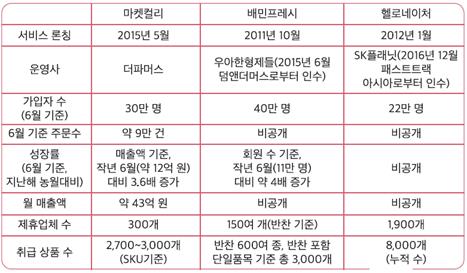 그림2. ▲ 신선식품 이커머스 3사 현황(각사 자료 취합, 올해 6월 기준)