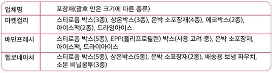 그림8. ▲ 신선식품 이커머스 3사가 사용하는 포장재(각사 자료 취합)