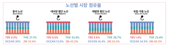 현재 3개 해운동맹은 전 세계 컨테이너 시장의 70% 이상을 점유하고 있다. 이에 따라 업계에서는 향후 세계 해운 시장이 이 3개 해운동맹을 중심으로 돌아갈 것이라는 예측이 나오고 있다.