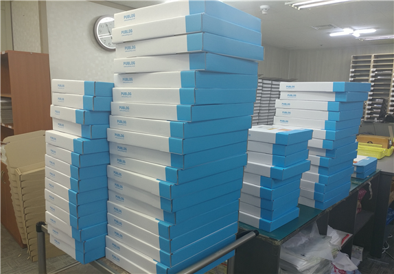 - 현시점 퍼블로그가 도입한 시스템이 디지털 사진인화 업계의 표준이 되었으며, 스마트팩토리 시스템이 없었다면 각각의 작업자는 생산이 완료된 제품에 수기로 ‘A고객’이라 적은 포스트잇을 붙여, 제작된 상품들을 모아 포스트잇 정보를 기반으로 확인하며 합 포장 했을 것임