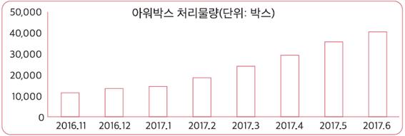아워박스 서비스에서 빼놓을 수 없는 부분은 반송업무다. 아워박스는 반송 상품의 입출고 관리를 하고 이를 시스템에 연동시켜 고객에게 일관된 서비스로 제공한다. 박 대표는 “아워박스는 냉동·냉장 상품 유통에 필수적인 인프라를 보유하지 못한 소호(SOHO)나 소규모 업체에 물류 솔루션을 제공한다.”며 “아워박스의 풀필먼트 서비스는 단순히 비용이나 편의성을 도모하는 차원을 넘어 고객의 시장 진입을 ‘가능하게 하는(Enabling)’서비스다”라고 덧붙였다. 물론 기존에도 보관과 포장 서비스를 함께 제공하는 창고 업체는 있었다. 그러나 박 대표에 따르면, 이들은 대개 출고 물량이 하루 최소 몇 천 건에서 몇 만 건은 돼야 서비스를 제공한다는 기준을 가지고 있으며, 그러한 서비스도 보관 중심에 머무른다. 아워박스를 이용하는 셀러는 직접 물류를 수행할 때보다 물류비용을 절감할 수 있다. 이는 아워박스가 여러 고객의 물량을 모아 규모의 경제를 달성했기 때문에 가능한 일이다. 한 달에 2,000건 정도의 가정간편식을 판매하는 업체가 있다고 가정해보자. 가정간편식은 배송에 스티로폼박스와 아이스팩 포장이 필요하다. 따라서 2,000건의 물량을 처리하려면 물류창고와 관련 장비, 그리고 물류 작업에 필요한 최소 2명의 인력이 필요하다. 셀러가 자체적으로 이 모든 것을 준비하기에는 부담스럽다. 박 대표는 “창고렌탈, 설비, 인력, 포장재, 배송에 드는 비용을 고려할 때, 아워박스 서비스를 이용하면 셀러가 직접 모든 과정을 처리하는 것보다 약 30% 정도의 비용을 절감할 수 있다”고 전했다. 또한 그는 “이러한 비용 외에도 직원 관리에 드는 부가적인 부담 역시 줄일 수 있다”고 덧붙였다. 이러한 장점을 무기 삼아 아워박스는 가파른 성장세를 이어가고 있다. 2016년 11월 정식으로 서비스를 시작했을 때만 해도 처리 물량이 한 달에 1만 5,000건 정도였다. 그러나 이후 매월 20%의 성장률을 보이며 지난 6월에는 4만 1,000건의 물량을 처리하는 성과를 냈다. 박 대표는 이러한 추세가 계속 이어져 올해 말에는 월 10만 건의 물량을 처리할 수 있을 것으로 내다보고 있다.