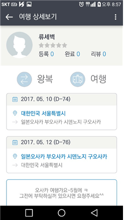 그림1. 해외여행 일정이 있는 여행자는 무버 플랫폼에 일정을 공유할 수 있다. 배송의뢰인은 해당 일정을 살펴보고 구매요청을 할 수 있으며, 이론상 일정만 맞으면 해외직구 ‘당일배송’까지 가능하다.