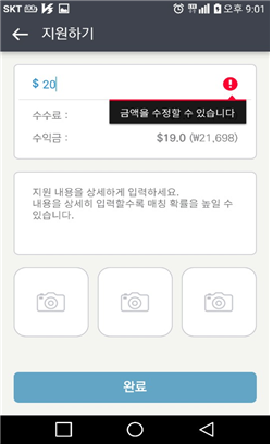 그림2. 배송의뢰인은 무버 플랫폼을 통해 희망가격을 기제하여 구매대행을 요청할 수 있다. 이를 수행할 배송인은 희망가격이 마음에 안들 경우 재차 수정, 요청한 후 배송가격을 흥정할 수 있다.