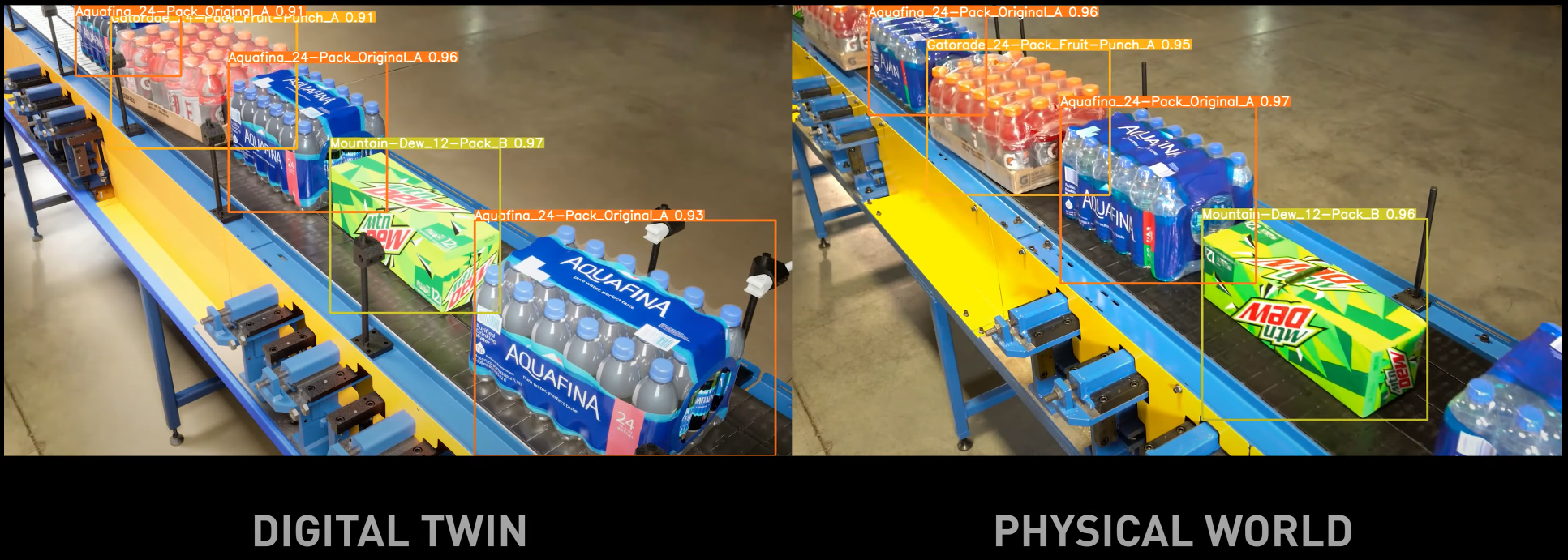 펩시콜라는 수백 개의 물류센터로 구성된 복잡한 네트워크를 통해 매일 약 10억 개의 제품을 유통하고 있다. 펩시콜라는 엔비디아의 파트너인 Kinetic Vision과 함께 인공지능 기반 '옴니버스' 플랫폼을 사용하여 디지털 트윈을 구축하였다. 디지털 트윈 구축에는 엔비디아의 비디오 분석 애플리케이션 Metropolis도 사용되었다. 물류센터의 디지털 트윈을 통해 물류 운영을 최적화하여 처리량을 개선하고 가동 중지 시간을 줄이며 에너지 소비도 줄이고 있다.