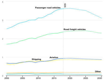 International Energy Agency (IEA), Transport sector CO2 emissions by mode in the Sustainable Development Scenario, 2000-2030