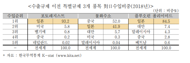 반도체 핵심 3품목(PR, HF, FPI)에 대한 일본 수출 규제 및 대응