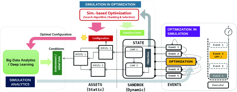 Digital Twin은 미래의 의사결정 사항에 대해 최적의 대안을 분석하기 위한 플랫폼이라고 볼 수 있기에 의사결정 분석단계는 시뮬레이션과 유사한 부분이 있다. 실제로, Digital Twin의 핵심 기능이 시뮬레이션이라고 흔히 알려져 있는데, 다양한 시나리오별로 변수들을 조합하여 수많은 가능성을 시뮬레이션으로 실험하여 그 결과를 관찰하는 것이 일반적이다. (시뮬레이션의 적용 유형은 너무 다양하기에 본지에서는 상세히 다루지 않는다.)