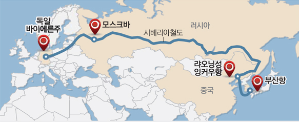 ㅇ 유럽과 아시아 대륙을 연결하는 철도 네트워크로, 유라시아 대륙을 횡단하여 물류와 인적 이동을 가능하게 하는 주요 교통 인프라임 - 이 철도는 중국, 러시아, 중앙아시아, 유럽을 연결하는 횡단철도(TSR: Trans-Siberian Railway), 중국-유럽 철도 등의 노선을 포함