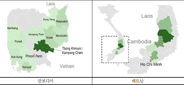 그림3. 베트남-캄보디아 후추 재배 지역 비교