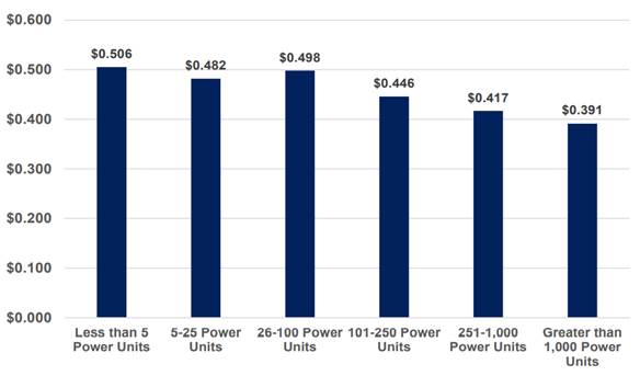 그림1. 미국 트럭 운영규모별 단위거리당 유류비