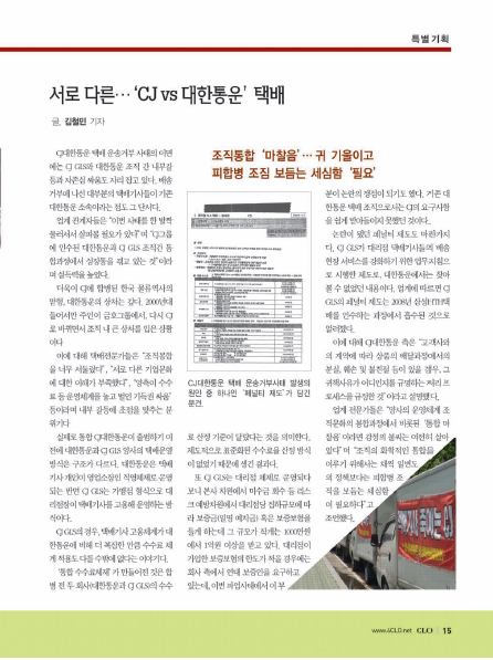 [CLO 김철민 기자] CJ대한통운 택배 운송거부 사태의 이면에는 CJ GLS와 대한통운 조직 간 내부갈등과 자존심 싸움도 자리 잡고 있다. 배송거부에 나선 대부분의 택배기사들이 기존 대한통운 소속이라는 점도 그 단서다. 업계 관계자들은 “이번 사태를 한 발짝 물러서서 살펴볼 필요가 있다”며 “CJ그룹에 인수된 대한통운과 CJ GLS 조직간 통합과정에서 성장통을 겪고 있는 것”이라며 설득력을 높였다. 더욱이 CJ에 합병된 한국 물류역사의 맏형, 대한통운의 상처는 깊다. 2000년대 들어서만 주인이 금호그룹에서, 다시 CJ로 바뀌면서 조직 내 큰 상처를 입은 상황이다 이에 대해 택배전문가들은 “조직봉합을 너무 서둘렀다”, “서로 다른 기업문화에 대한 이해가 부족했다”, “양측이 수수료 등 운영체계를 놓고 벌인 기득권 싸움” 등이라며 내부 갈등에 초점을 맞추는 분위기다 실제로 통합 CJ대한통운이 출범하기 이전에 대한통운과 CJ GLS 양사의 택배운영 방식은 구조가 다르다. 대한통운은 택배기사 개인이 영업소장인 직영체제로 운영되는 반면 CJ GLS는 가맹점 형식으로 대리점장이 택배기사를 고용해 운영하는 방식이다. CJ GLS의 경우, 택배기사 고용체계가 대한통운에 비해 더 복잡한 만큼 수수료 체계 적용도 다를 수밖에 없다는 이야기다.