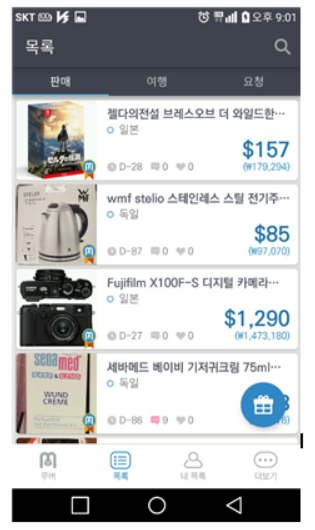 그림2. 무버 어플리케이션을 통해 배송인이 올려놓은 상품을 마치 오픈마켓에서 구매하듯 구매할 수 있다. 결제까지 자동 연동되는 방식이다.