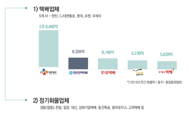 그림4. 국내 주요 택배사 매출 및 정기화물업체 현황